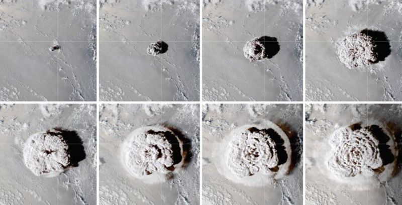 El volcán explotó violentamente en enero de 2022, arrojando 10 km cúbicos de rocas, cenizas y sedimentos hacia el cielo, produciendo una columna de 58 km de altura.