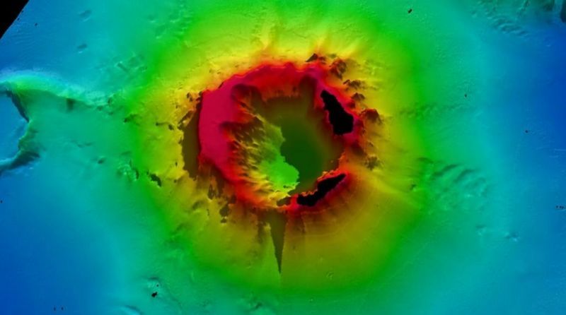 Las islas son, de hecho, pequeños picos en el borde de un gran hueco en forma de caldera que es su cráter.