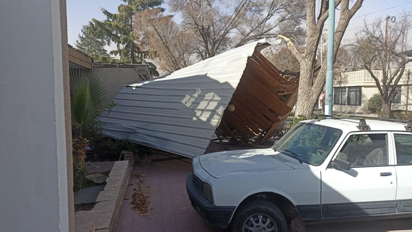A una vivienda se le cayó el techo de chapa y cayó sobre la vereda.
