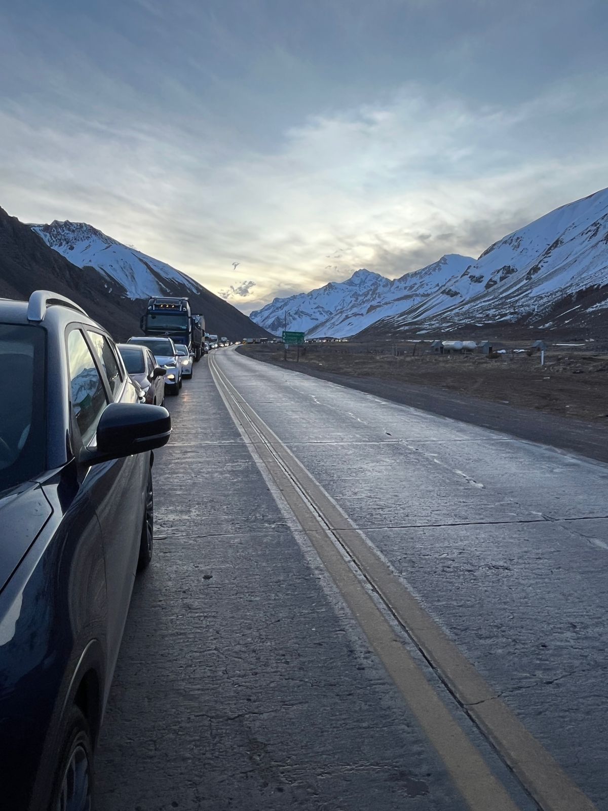 "Los autos y camiones comenzaron a pasar en doble línea, esto puede producir accidentes. Esto se da por la ineficiencia de Gendarmería que sigue retrasando", agregó. E informó que la fila iba desde Punta de Vacas hasta la aduana argentina de Horcones.