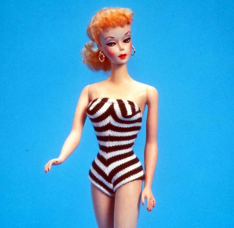 Barbie fue presentada por primera vez en la Feria del Juguete de Nueva York de 1959 usando un icónico traje de baño a rayas blancas y negras.