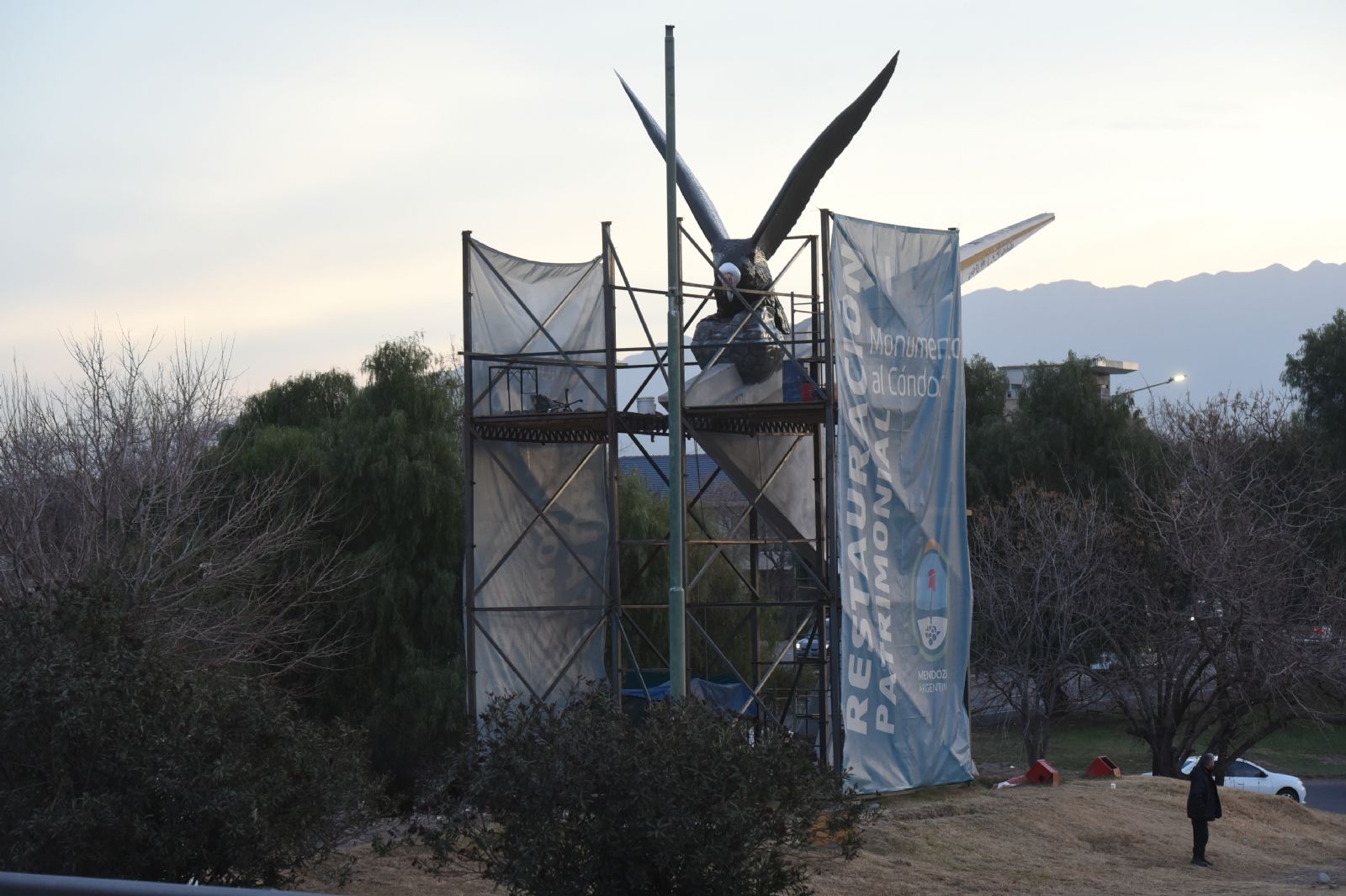 "El Cóndor ha sufrido daños a lo largo de la historia. Uno de los primeros arreglos consistió en colocar un tensor a la estructura de hierro que ya está totalmente oxidada. Pudimos comprobar que no estaba sellada la cabeza. Entonces en realidad estaba ahí como volante, con esa tormenta de febrero, evidentemente se generó un daño muy significativo y una pérdida. A partir de allí comenzó un trabajo de recuperar los pedazos, hacer una recreación exacta mediante el ensamblaje y luego el calcado prácticamente en 3D de la cabeza, pero con materiales que supusieran mayor resistencia, pero más liviandad, y empezamos a reemplazar toda la estructura oxidada y de yeso prácticamente degradado que tenía el resto del cuerpo. Estamos frente a una escultura totalmente restaurada que inclusive implicó la intervención de las alas que son de chapa, que tenían muchos sectores muy oxidados, perforado, que tuvieron que ser tratados con con el dióxido e incluso aprovechar la oportunidad para llevar adelante una reparación de la obra del arquitecto Molina y del ingeniero Taboada, que es el pie del Cóndor, que en realidad es de hormigón", comentó a MDZ Horacio Chiavazza, director de patrimonio cultural de la provincia de Mendoza.