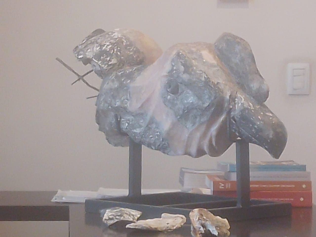 El director de Patrimonio compartió con MDZ la imagen de la cabeza del Cóndor que en aquella tormenta de febrero de 2022 cayó al suelo producto del fuerte granizo y que fue capturada por algunos vecinos de Guaymallén. "La cabeza vieja la tengo conmigo, en mi oficina. Me mira a los ojos ahora prácticamente. Hubo partes que no pudimos recuperar porque se hizo pedazos y el artista con fotos y formas fue haciendo la constitución", señaló.