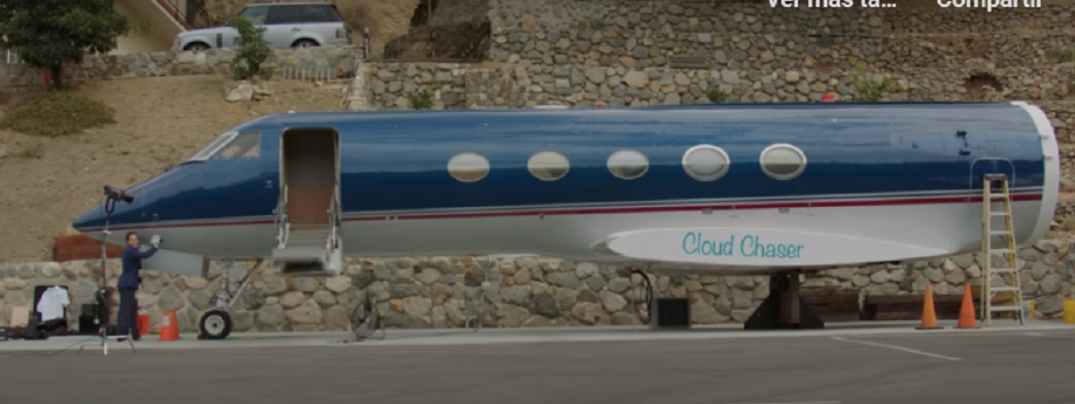 El nombre del avión en cuestión es "Cloud Chasers", un juego de palabras con el término cazador de influencias usado a menudo para referirse a un influencer.