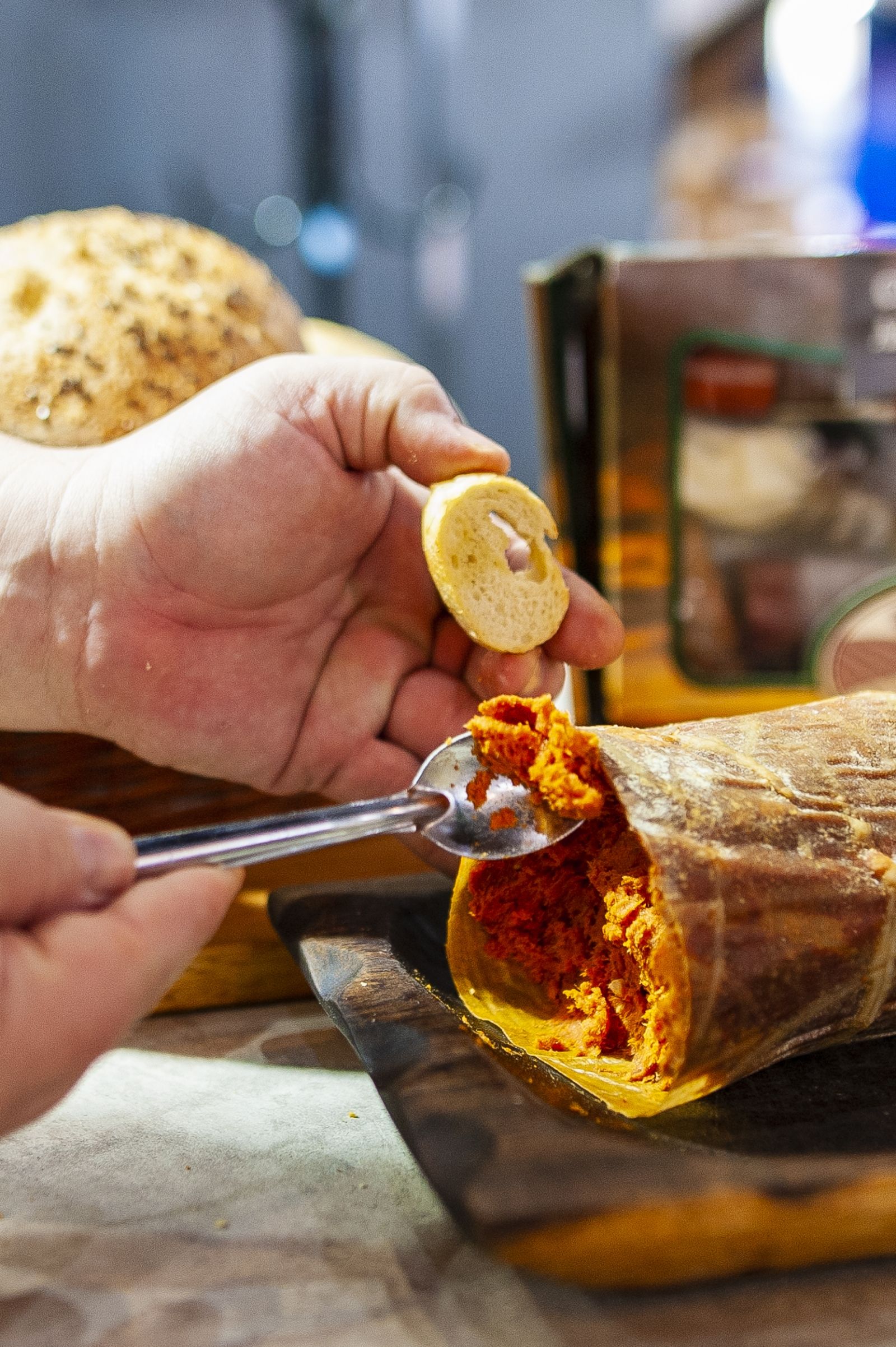 La primera escala obligada en Caminos y Sabores es una compañía mendocina. Más precisamente de San Rafael. Se trata de Secretos del Monte, una empresa familiar que ofrece jamones ahumados. Un destacado en su propuesta son los choripanes de jabalí y los sándwiches de jamón crudo.
