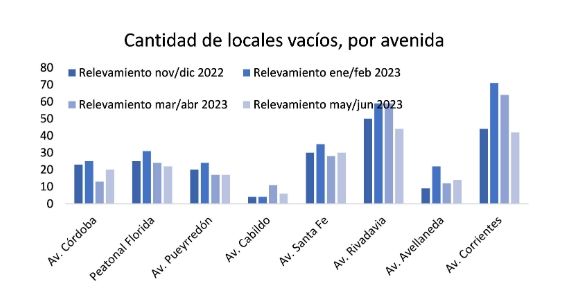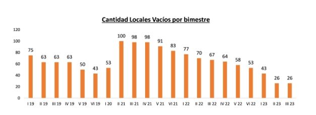 Según ese informe, en el bimestre mayo-junio de 2023, la cantidad de locales vacíos mostró una baja de 14,5% en comparación a marzo-abril de este año.
