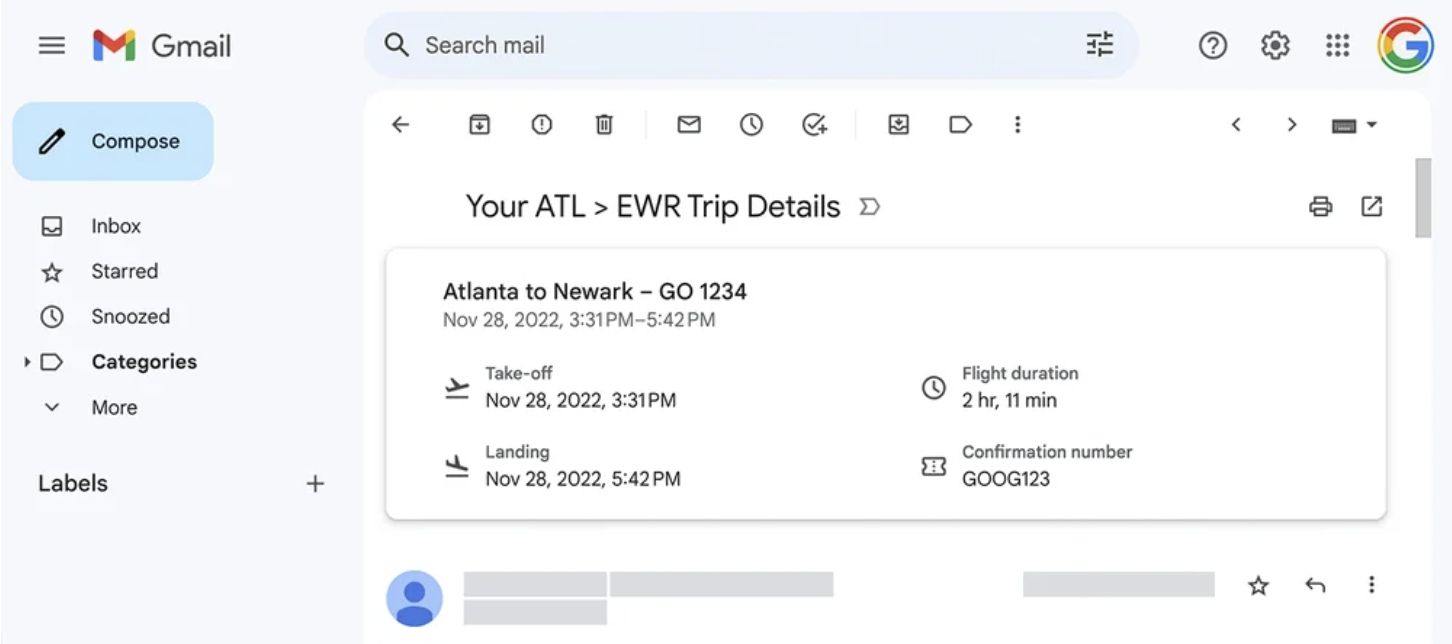 Como su nombre indica, la Tarjeta de resumen es una característica inteligente que, ante algún correo con grandes cantidades de información, brinda un fragmento de su contenido. Esta función se basa en algoritmos heurísticos, que son más veloces y utilizan atajos, y también de aprendizaje automático para analizar la información y escoger los detalles más importantes del mensaje. Dependiendo del tipo de correo recibido, desde compras o pasajes, Tarjeta de resumen mostrará información importante como las fechas y duración del vuelo, o el nombre de artículo comprado.