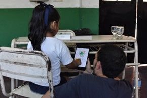 “Durante los encuentros con los niños y niñas mostramos cómo aplicar el test de habilidades fonológica básicas, un “screening digital”, una evaluación corta, que cualquiera puede hacer y que permite conocer el nivel de alfabetización de cada chico o chica”, comenta Ignacia Donoso, del equipo de implementación de Wumbox. “Con los y las docentes trabajamos sobre cómo usar Leo Leo para acompañar el proceso de alfabetización que se da en la escuela, y también los orientamos sobre cómo utilizar las computadoras o proyectores que puedan tener en el centro educativo para potenciar la propuesta. Además, trabajamos con las madres y los padres, ya que la app está diseñada para que ellos acompañen a sus hijas e hijos en este proceso desde el hogar. Con ellos conversamos sobre distintas estrategias para que la descarga sea efectiva”, agrega.