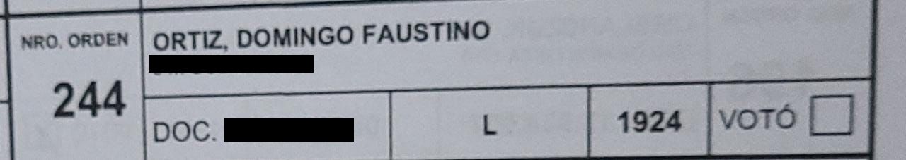 Domingo Faustino murió el 2 de septiembre de 1987, hace exactamente 36 años. No se trata del prócer argentino, sino de un vecino de Las Heras de apellido Ortiz. Un familiar denunció que Domingo aún aparece en el padrón electoral que fue entregado a las autoridades de mesa durante la celebración de las elecciones PASO. Pero no se trató del único caso, en la escuela Carlos Daniel Berdasco, de La Favorita también ocurrió un hecho de estas características.