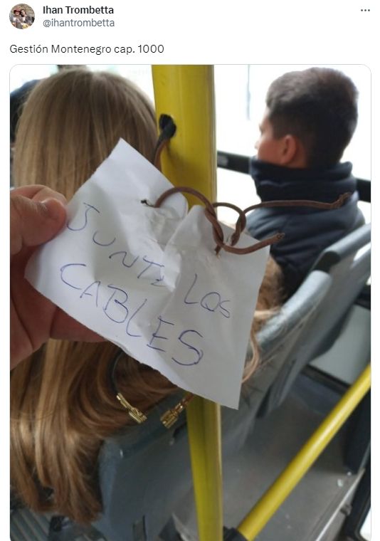 El usuario de Twitter Ihan Trombetta (@ihantrombetta) contó a sus seguidores que tuvo que "tocar los cables" para avisarle al chofer de la línea 571 que quería bajarse.