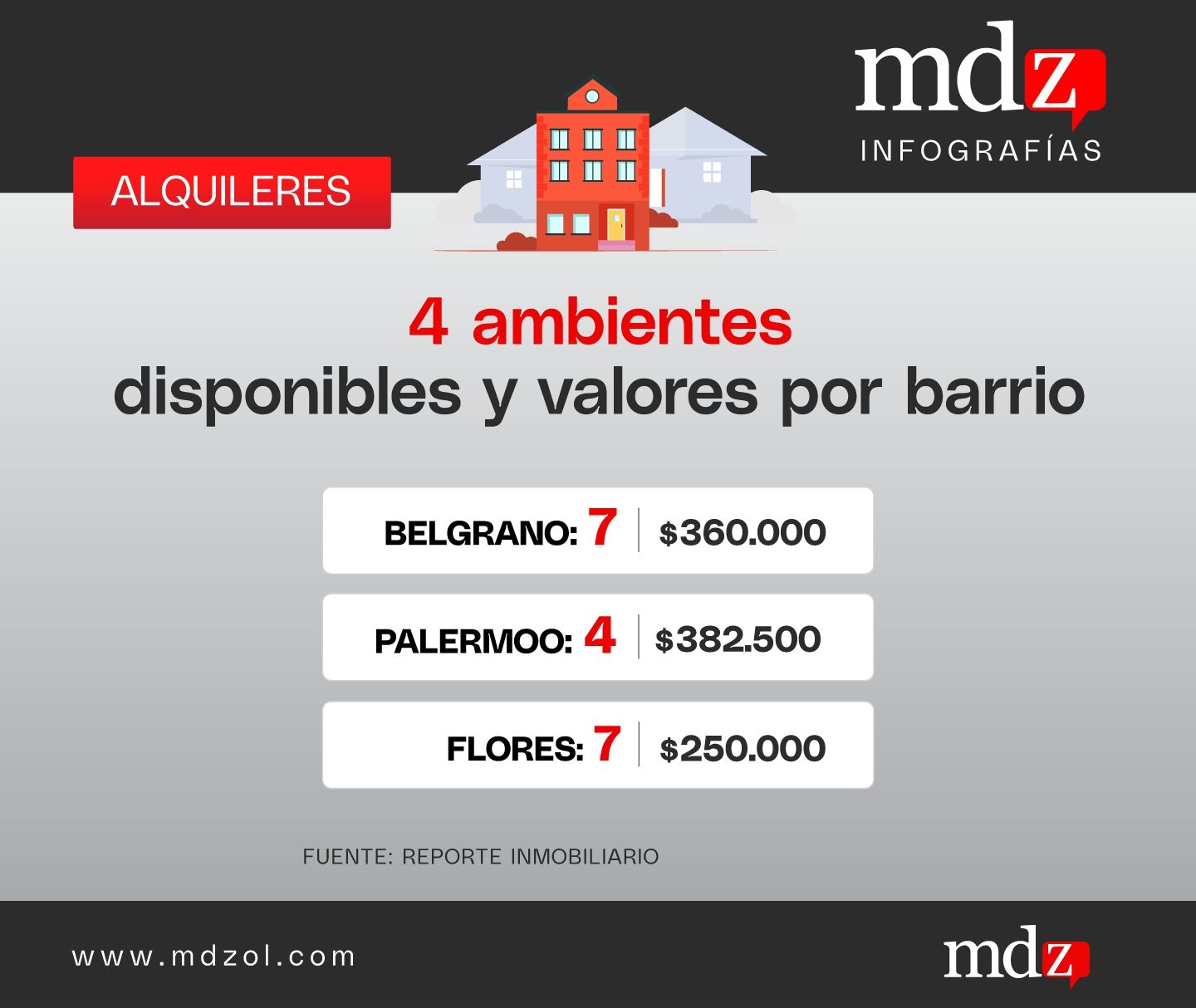 Belgrano, Flores y Palermo, con 7,7 y 4 unidades respectivamente, son los únicos tres puntos porteños que tienen a disposición oferta de viviendas con más metros cuadrados y divisiones. En julio, en total, sólo había 686 departamentos publicados en el mercado de manera oficial. La cifra es un 26% inferior a la de junio de este año y del 58,8% menor a la que encontraban los que buscaban alquilar una propiedad en julio del año pasado cuando la disponibilidad era de 1649 departamentos.