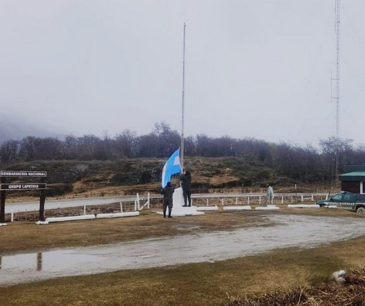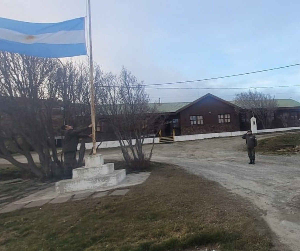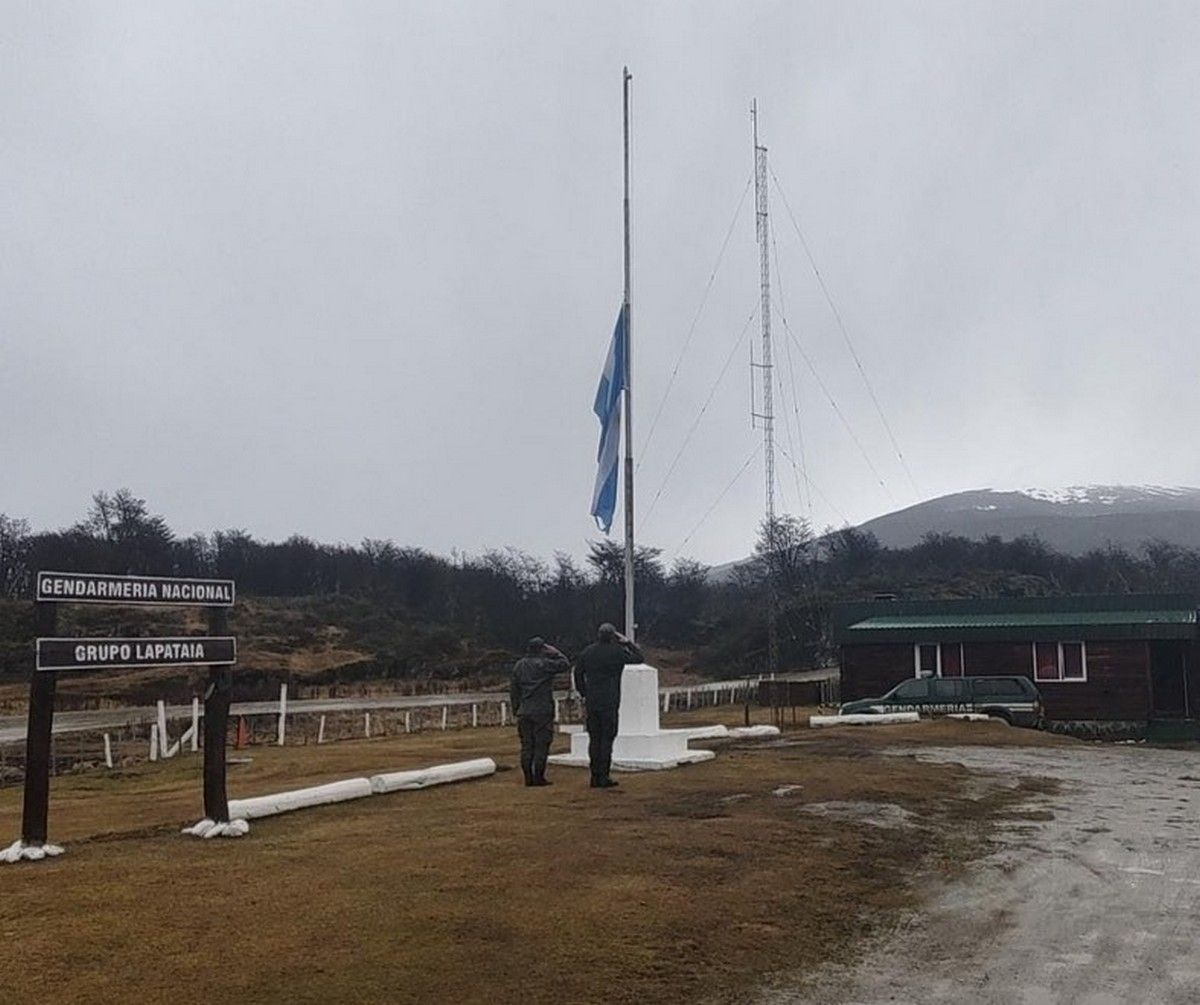 Con varias fotos compartidas en las redes sociales de Gendarmería, se ve a distintos efectivos izando el pabellón argentino a media asta y realizando la venia en respeto a los fallecidos.