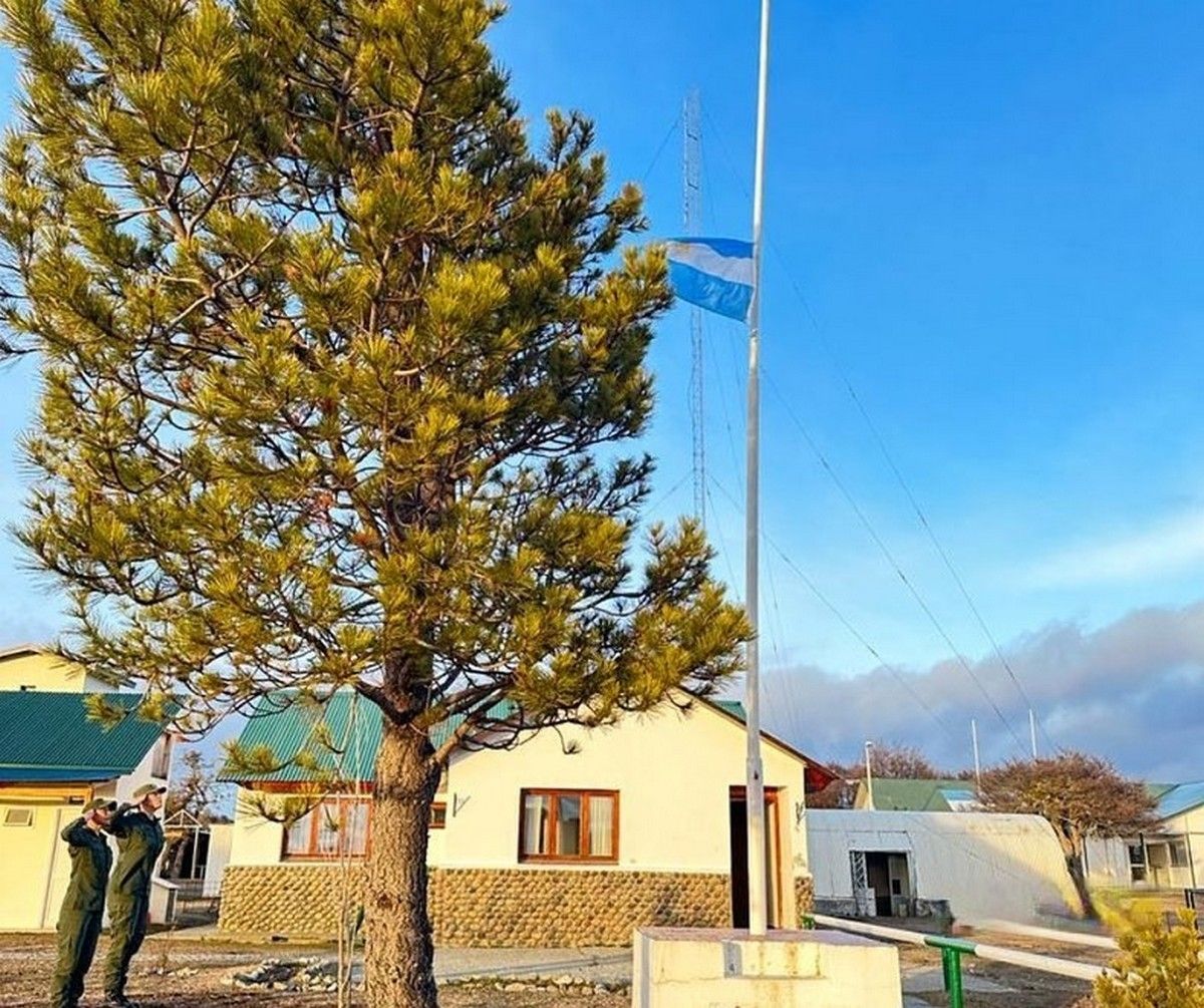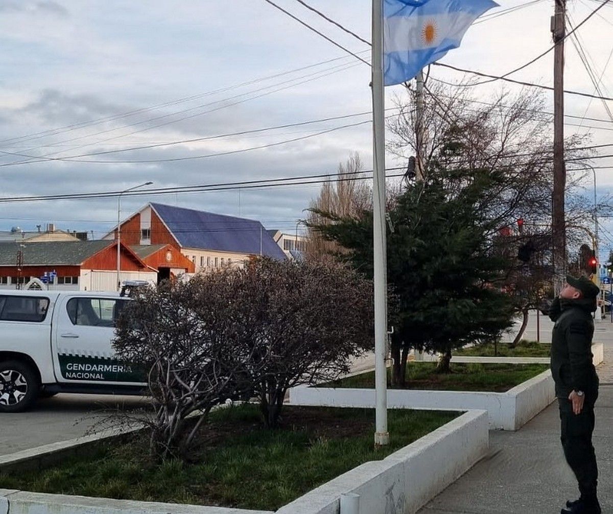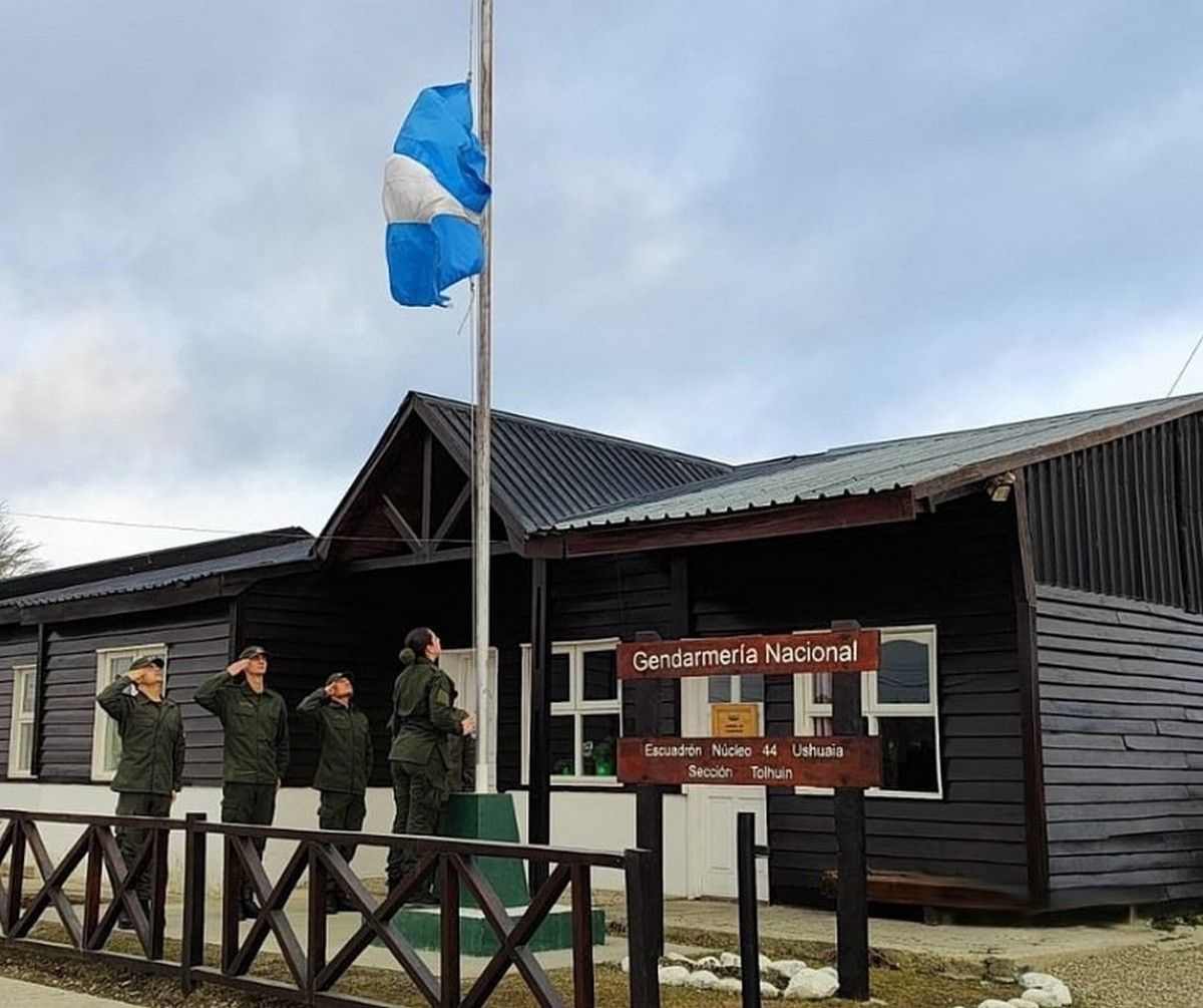 Con varias fotos compartidas en las redes sociales de Gendarmería, se ve a distintos efectivos izando el pabellón argentino a media asta y realizando la venia en respeto a los fallecidos.