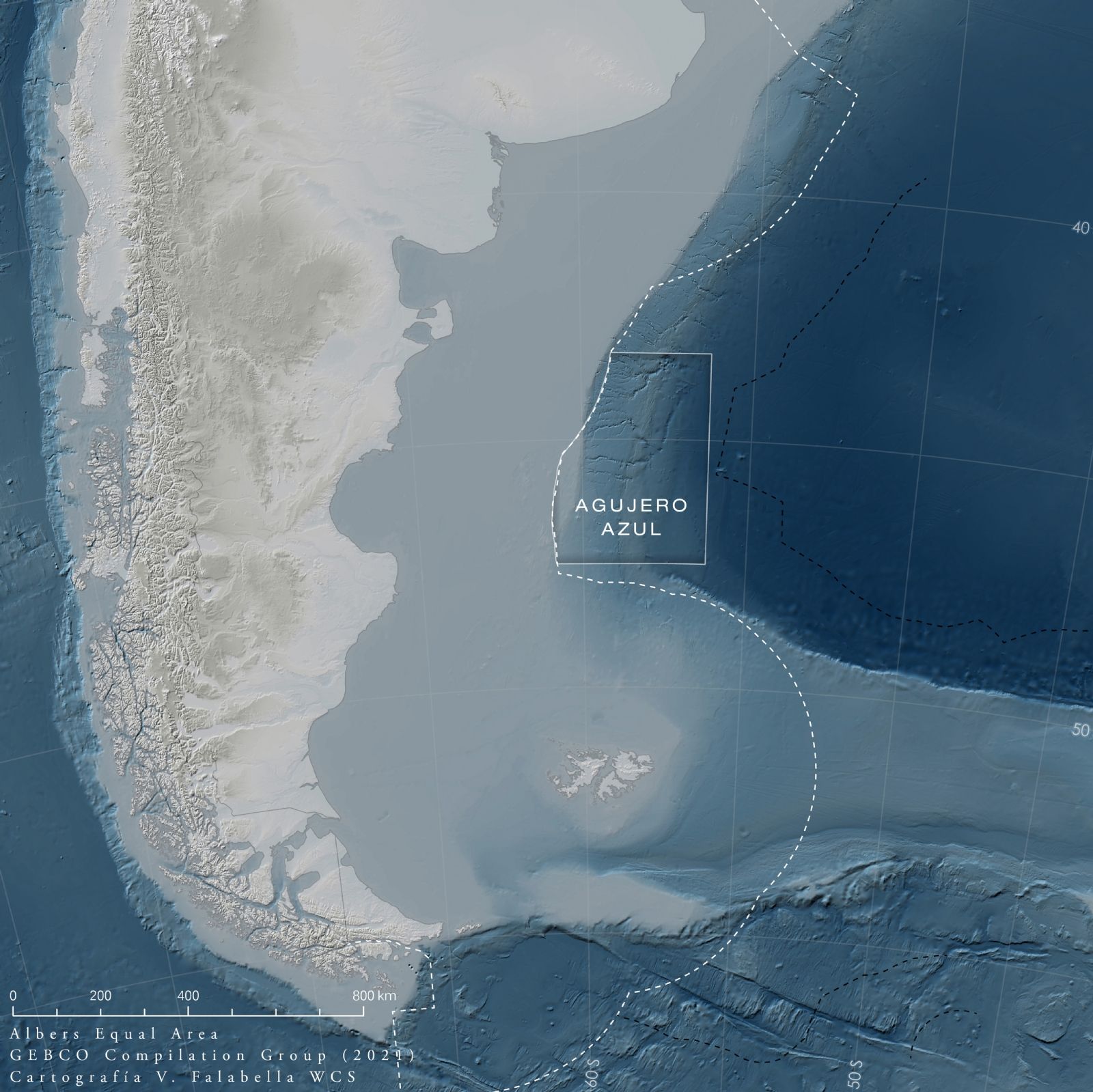 Localizada en el talud continental y atravesada por el frente productivo más importante del Hemisferio Sur, el Área Marina Protegida Agujero Azul es una de las cinco áreas geográficas prioritarias de la iniciativa interministerial del Gobierno, Pampa Azul. La protección del área cuenta con el aval de científicos, referentes de la temática y doce de las organizaciones de la sociedad civil más prestigiosas de la Argentina, agrupadas en el Foro para la Conservación del Mar Patagónico.