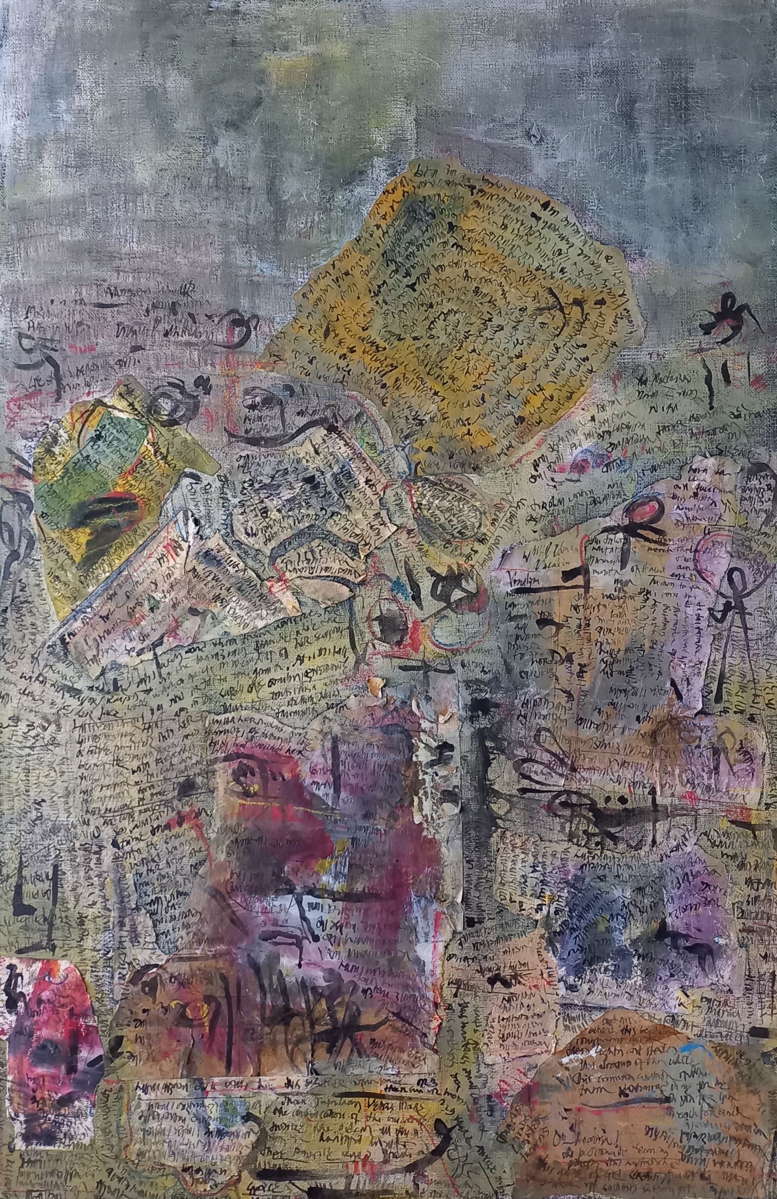 La obra de Gotcha oscila entre la contención de la escritura y el deslímite del azar, presente en la gestualidad del trazo pictórico y en la espontaneidad de la letra dibujada. Si la escritura es pasado, presente y futuro, la materia es cuerpo sometido a la exterioridad accidental que la convierte en testigo de un pasado de transformaciones que vive en el presente.