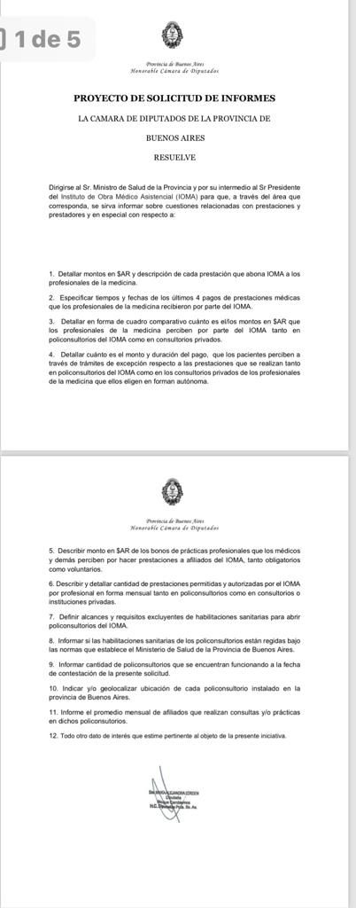 Dicho sea de paso, Homero Giles, titular de IOMA, nunca respondió los pedidos de informes de legisladores de Juntos por el Cambio sobre la situación de IOMA con los prestadores y las solicitudes de informes sobre la homologación de títulos y matrículas de los profesionales que trabajan en los policonsultorios