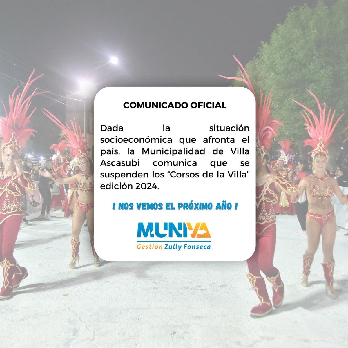 Para el mes de febrero, ya se comunicó que Almafuerte canceló su evento gastronómico Picnic y están en dudas la realización de algunos corsos provinciales, como es el caso del que anualmente se realizaba en Villa Ascasubi, que ya anunció que no se hará este verano.