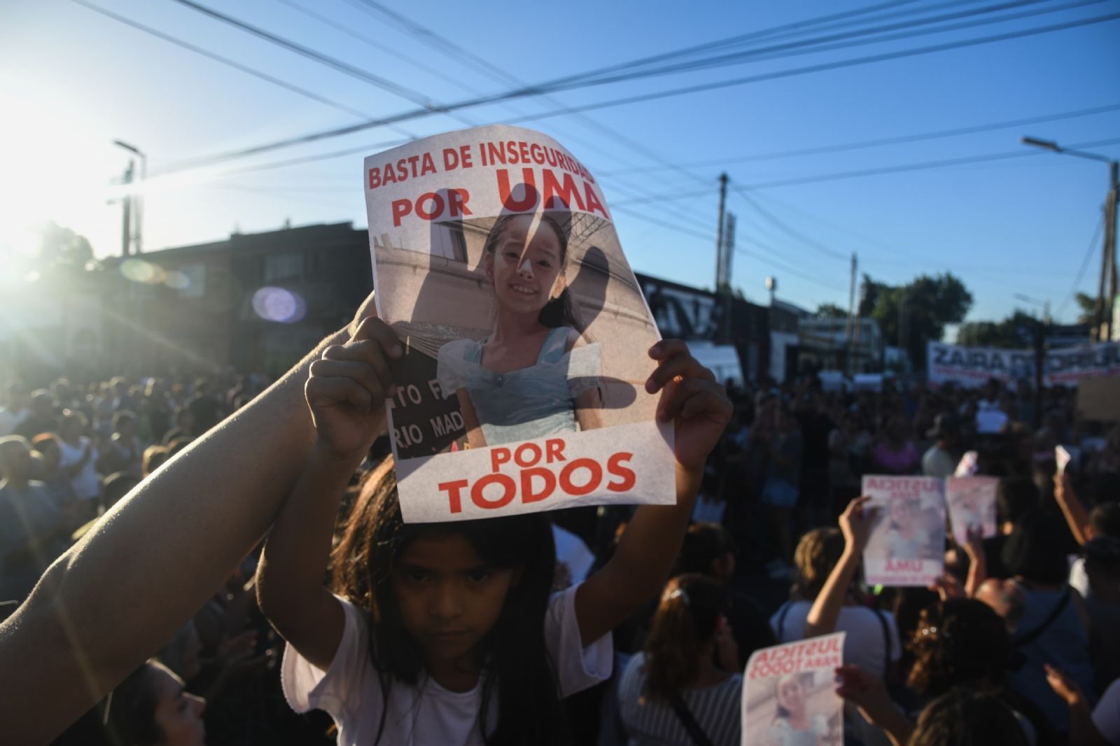 Los vecinos -muchos de ellos acompañados por sus hijos- portaban pancartas que decían "Justicia", mientras caminaban por las calles en medio de la marcha que habían convocado los familiares de la nena asesinada.