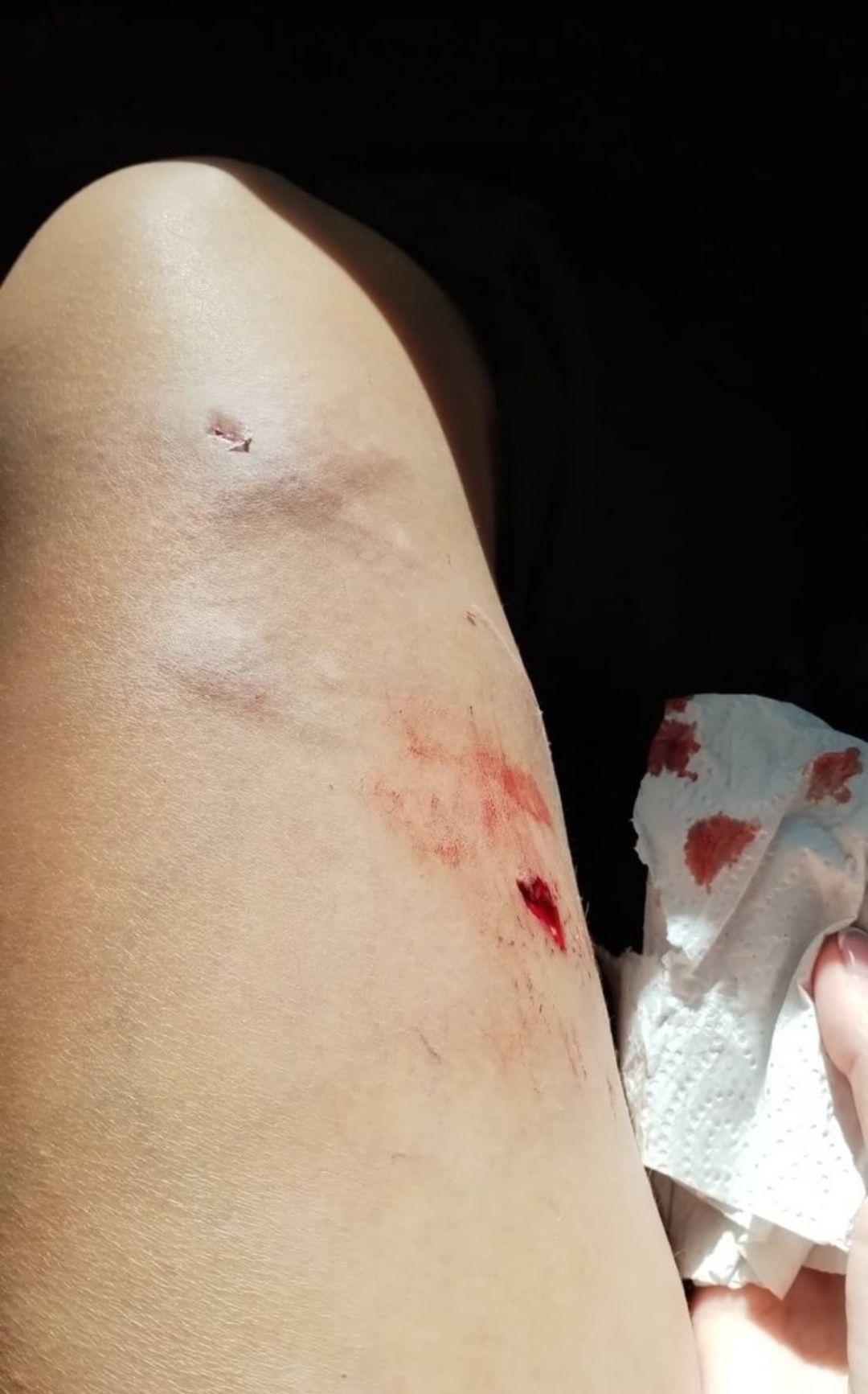 Además, la mujer afirmó que realizó la denuncia policial correspondiente y acompañó su testimonio con una serie de imágenes donde pueden verse las secuelas del ataque animal. Según consta en las imágenes, Gimena fue herida en la parte superior de su pierna derecha.