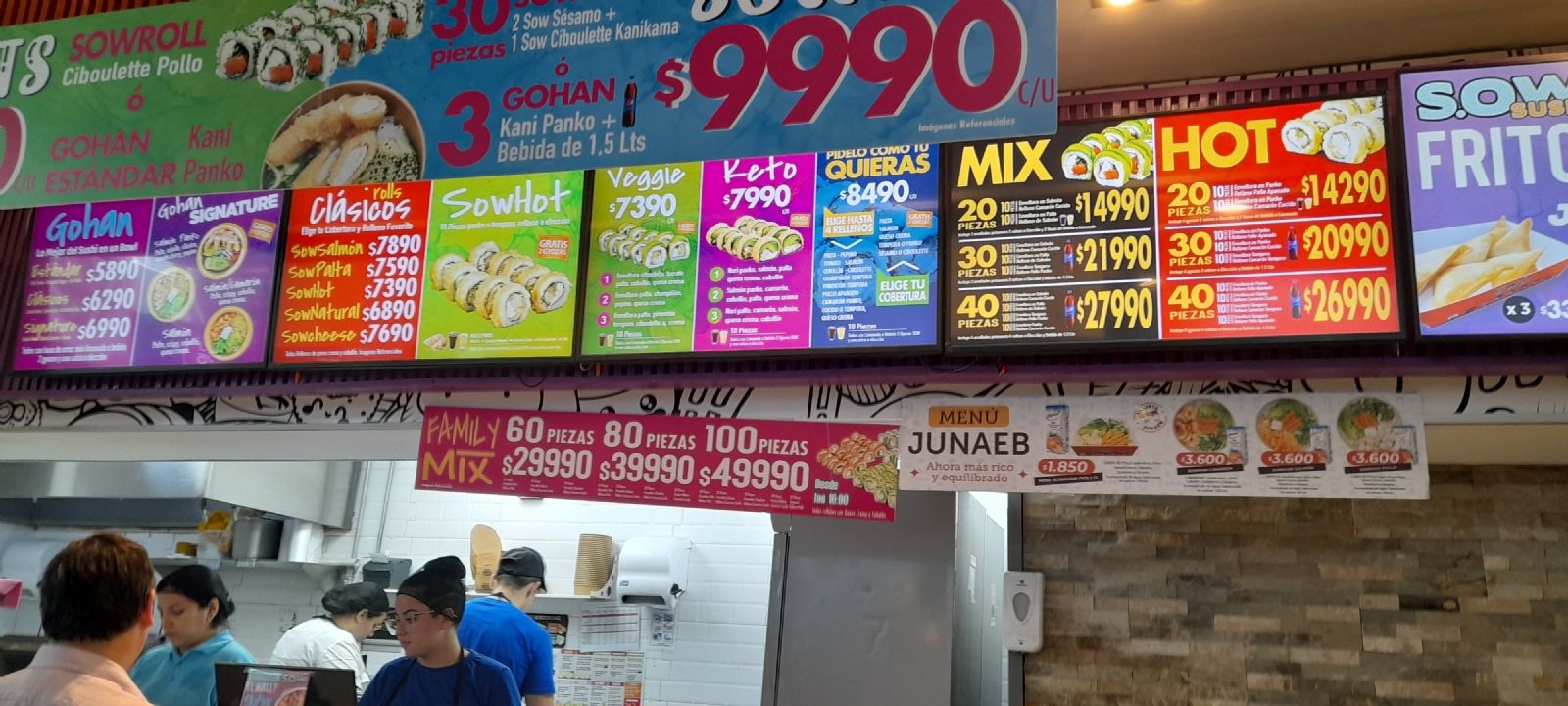 En caso de buscar algo más sofisticado como sushi, se pueden encontrar mix de 20 piezas por 14.900 pesos chilenos.