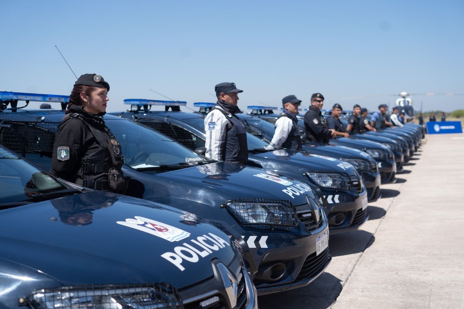 El Ministerio de Seguridad y Justicia incorporó una nueva flota de patrulleros con un avanzado equipamiento tecnológico que favorecerá las tareas de la Policía de Mendoza. Se trata de 123 vehículos que fueron presentados por el gobernador Alfredo Cornejo junto con la ministra de Seguridad y Justicia, Mercedes Rus, en un acto en Base Cóndor.