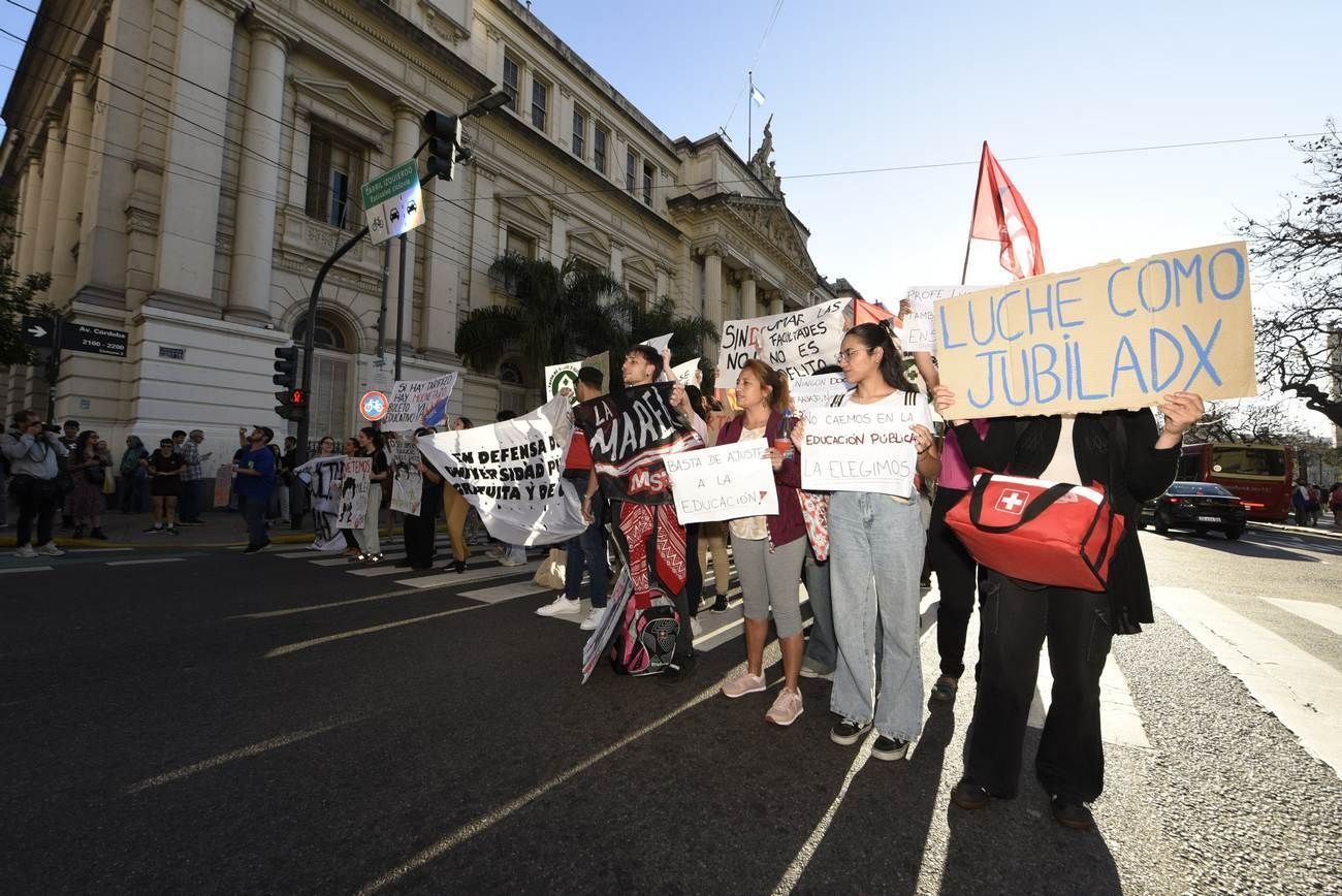 En ese ámbito, estudiantes, docentes y no docentes se convocaron en esa manifestación que culmina frente a Educación para sostener la protesta que incluye clases públicas, tomas e incluirá la huelga e este jueves.