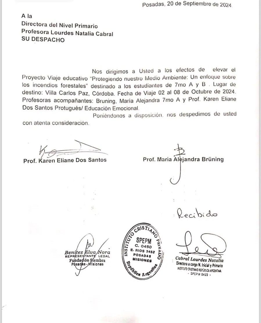El organismo encargado de la regulación de las instituciones educativas privadas de la provincia de Misiones está evaluando el proyecto de viaje que la institución educativa presentó fuera de los plazos establecidos.