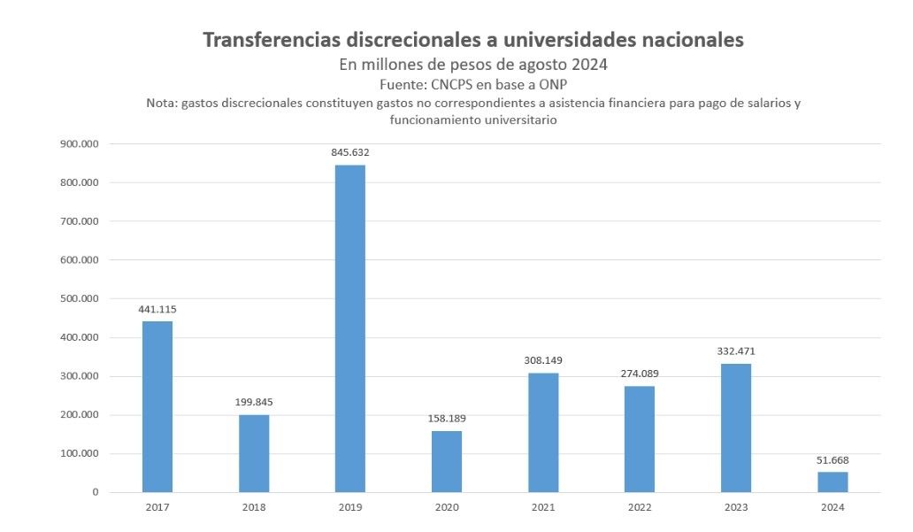 Respecto a los fondos asignados en 2022, descubrieron que sólo se presentó la rendición del 0,19% de los transferidos. Cabe destacar que la discrecionalidad refiere al reparto de fondos en la variación del ?nanciamiento hacia las universidades nacionales.