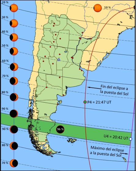 - Tierra del Fuego (Ushuaia): 0.91%. La mejor hora para verlo es: 17:23.