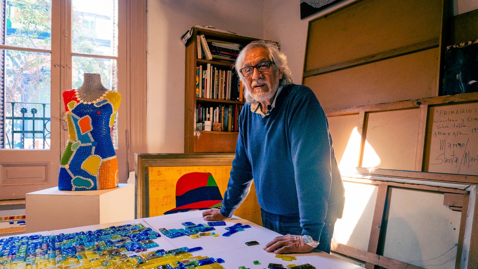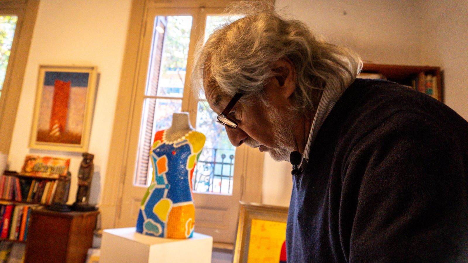 Lo primero que hizo Marino al vernos llegar fue invitarnos hacia el interior de la casona donde nos esperaba con mates. Allí nació y vivió gran parte de su vida, junto a una extensa familia descendiente de italianos. La casa, construida en el 1910, fue testigo del arte de dos generaciones distintas. Su padre, quien fue el pintor porteño Marino Gregorio Pérsico, fue el primero en instalar su taller de cerámica y pintura en el interior del hogar. Es por ello que Marino, que dormía al lado de dónde su padre pintaba, sitio donde ahora está ubicado su propio taller, asegura que heredó “la pintura hasta por ósmosis”.