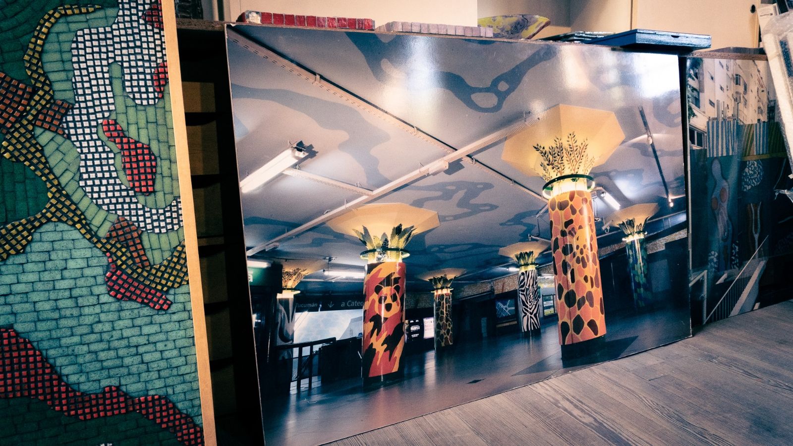 Otra de sus grandes obras expuestas ante el público se encuentra en la estación Plaza Italia del Subterráneo de Buenos Aires, precisamente, de la Línea D. Julio Cortázar, con su libro “Animalia”, inspiró a Marino a pintar las columnas con las texturas de distintos animales, mientras que el capitel está revestido con la pintura de la hoja que cada animal come. Como si fuera poco, el artista que este año recibió el premio al Mérito del Kónex, se encargó de crear la obra en mosaico de la conexión entre las estaciones Las Heras y Pueyrredón de la Línea H y D del Subte, respectivamente. “Esta obra aparece en la última película de Darín, ‘El amor menos pensando’, que está en Netflix, y lo filman justo en ese lugar. O sea que está mi nombre ahí todo el tiempo”, dijo orgulloso acerca del trabajo de 500 metros cuadrados.