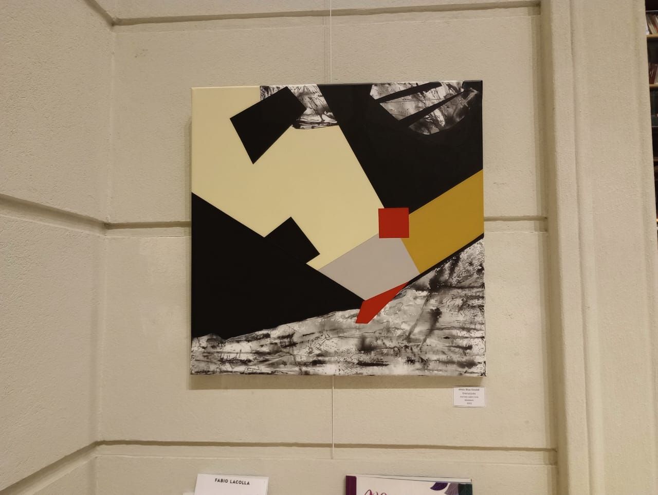 Alicia Díaz Rinaldi dedicada mayormente al grabado y el arte gráfico en general, recientemente galardonada con “La Gubia de Plata” por Xilon Argentina, decidió ahora volcarse más a la pintura. En esta muestra sus obras abordan, también en clave geométrica, la tensión entre el caos y el orden reinante en el mundo, y yo no diría del mundo de hoy sino en el mundo de siempre, porque como rezan los psicoanalistas siempre depende de la “subjetividad de la época”. Pero en la cosmovisión de Alicia expresada en estas telas existe un exterior amenazante de cambios violentos, ya sean naturales o sociales, que parecen guiar a la destrucción, sin embargo también coexiste el orden, el suyo interior y también de una sociedad que busca una dirección y una solución al caos.