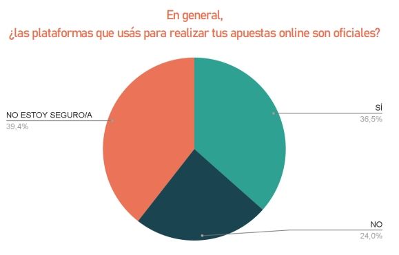 En el informe, además, se demuestra que el 73% descubrió estas plataformas mediante amigos, conocidos o familiares, dejando el 26% al conocimiento de las apuestas por medio de influencers o publicidad. Por otro lado, el 39% de los encuestados no sabe si juega en lugares oficiales o no. Y entre quienes sí lo saben, un 60% dice hacerlo en plataformas oficiales, mientras que las ilegales se ubican en tercer lugar con el 40%.