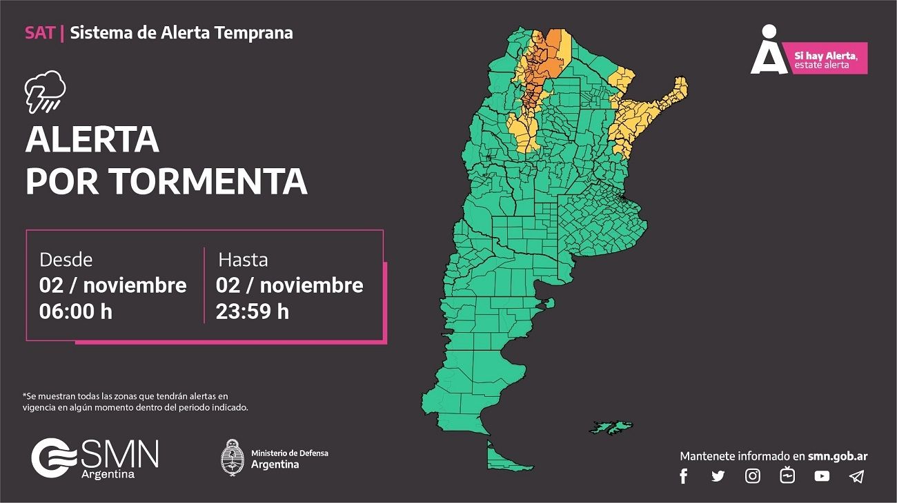Estas alertas meteorológicas tienen distintos niveles de riesgo. Según el SMN, una alerta amarilla prevé posibles fenómenos meteorológicos que pueden ocasionar daños y afectar las actividades diarias. En cambio, la alerta naranja indica condiciones más extremas, con eventos que podrían derivar en emergencias o incluso desastres naturales.