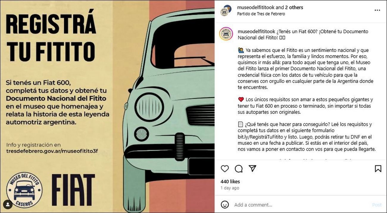 El Museo del Fitito, ubicado en Caseros, ha lanzado una campaña especial que busca reconocer a los propietarios de los icónicos Fiat 600 con la creación del Documento Nacional del Fitito (DNF).