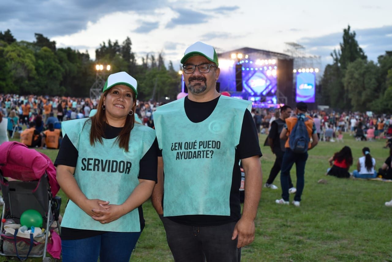 Las pecheras naranjas y verdes en vez de decir “organización” decían “amigos” y “servidores”. Los primeros se dedicaban a llevar un mensaje de evangelización y hasta tenían un código QR para descargar libros evangélicos. Por su parte, los servidores estaban encargados de asistir a los fieles en sus necesidades como ubicación de los baños o dispensadores de agua.