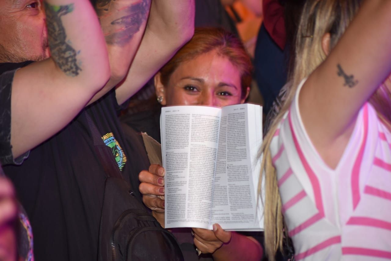 Crónica de una fiesta evangélica: oración, música, biblias gratis y pantallas gigantes de la mano de Andrés Palau