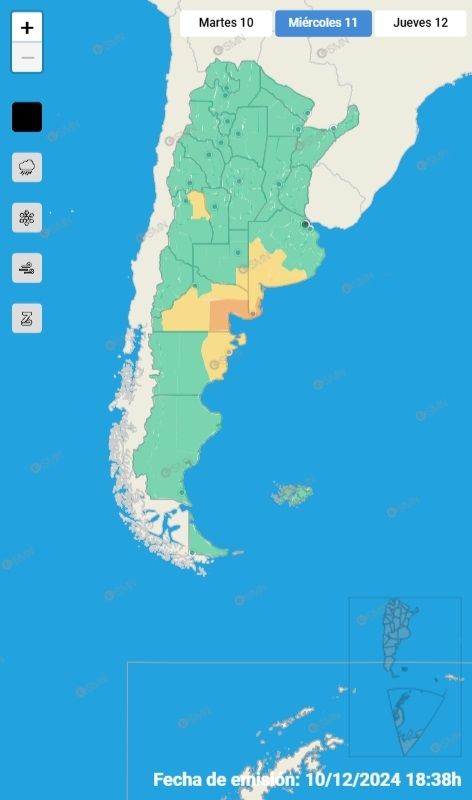 Según el SMN, el alerta abarca la zona noreste provincial, específicamente los departamentos de Lavalle, San Martín, Santa Rosa y La Paz.