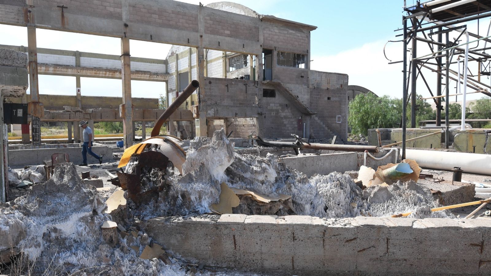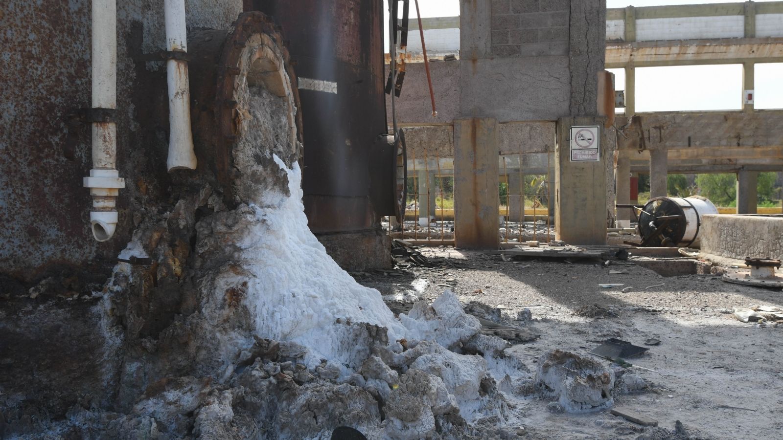 Al lado hay unos silos que contenían sal y un tanque de ácido clorhídrico que se desfondó cuando la fábrica todavía estaba funcionando. El predio está deñado por el paso del tiempo y la huella del hombre. Hierros retorcidos se mezclan con algunos juguetes abandonados, chapas y algunas plantas silvestres que empiezan a ganar terreno.