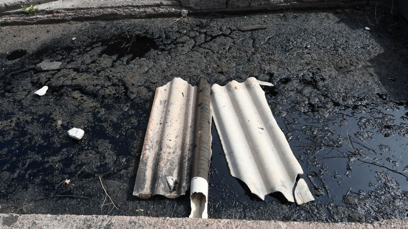 Según pudo confirmar MDZ, en el suelo de lo que era un edificio de dos plantas -ahora solo quedan tres paredes- hay un líquido plateado y brillante con características muy similares a las del mercurio. En algunas partes hay pequeños charcos, en otras el líquido se asoma debajo de la tierra seca y otras, docenas de perlitas plateadas brillan como pequeños adornos de navidad.
