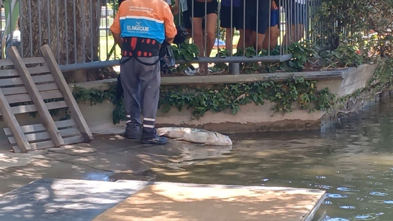 Apareció flotando en las aguas del lago y llamó la atención por su tamaño, bastante considerable para las dimensiones del lago del Parque San Martín.