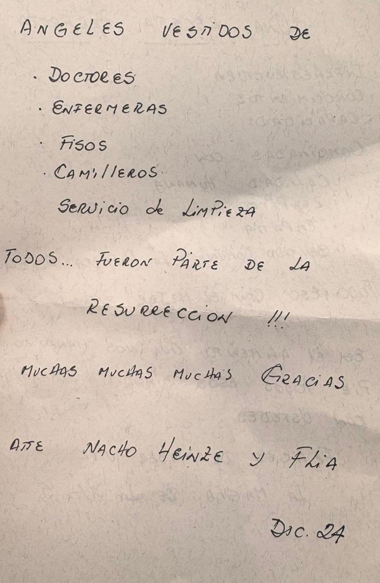 La emotiva carta que el sobrino de Heinze dejó en el Hospital Central