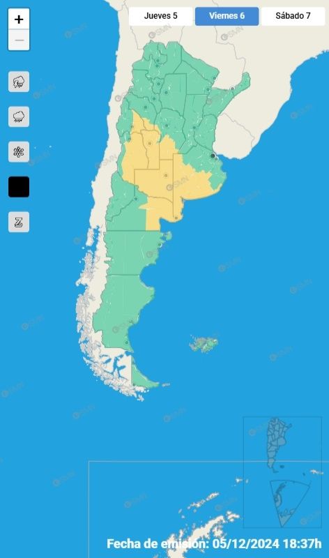 El Servicio Meteorológico Nacional (SMN), a través de su Sistema de Alerta Temprana, emitió una serie de advertencias para este viernes 6 de diciembre por vientos fuertes, tormentas y lluvia.