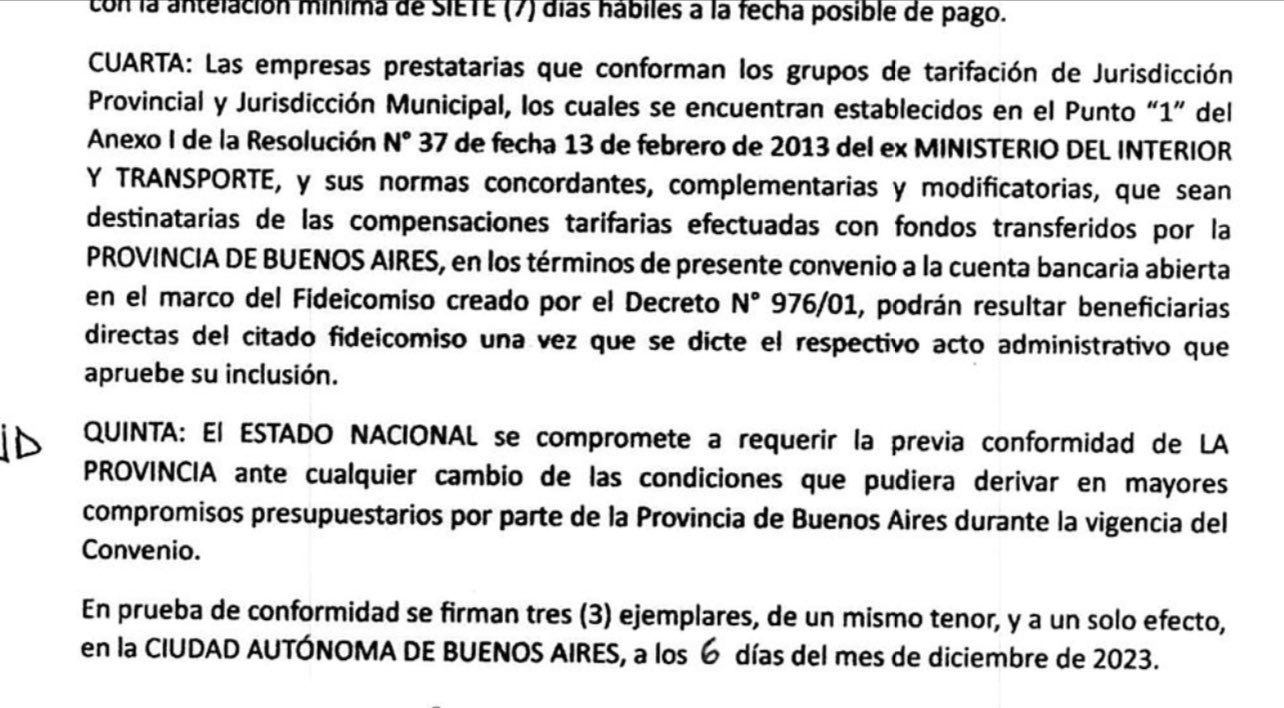 Para graficar ese escenario, el empresario hizo referencia a uno de los párrafos del convenio de colaboración entre el Ministerio de Transporte de la Nación y el Gobierno bonaerense, en donde refiere a que las líneas de jurisdicción provincial y municipal del AMBA (las líneas del número 200 hacia arriba, casi la mitad de todas las que circulan en el AMBA), se rigen a través de un procedimiento mediante el cual, si bien Nación calcula y liquida los subsidios (compensaciones tarifarias), es la Provincia quien termina aporta los fondos