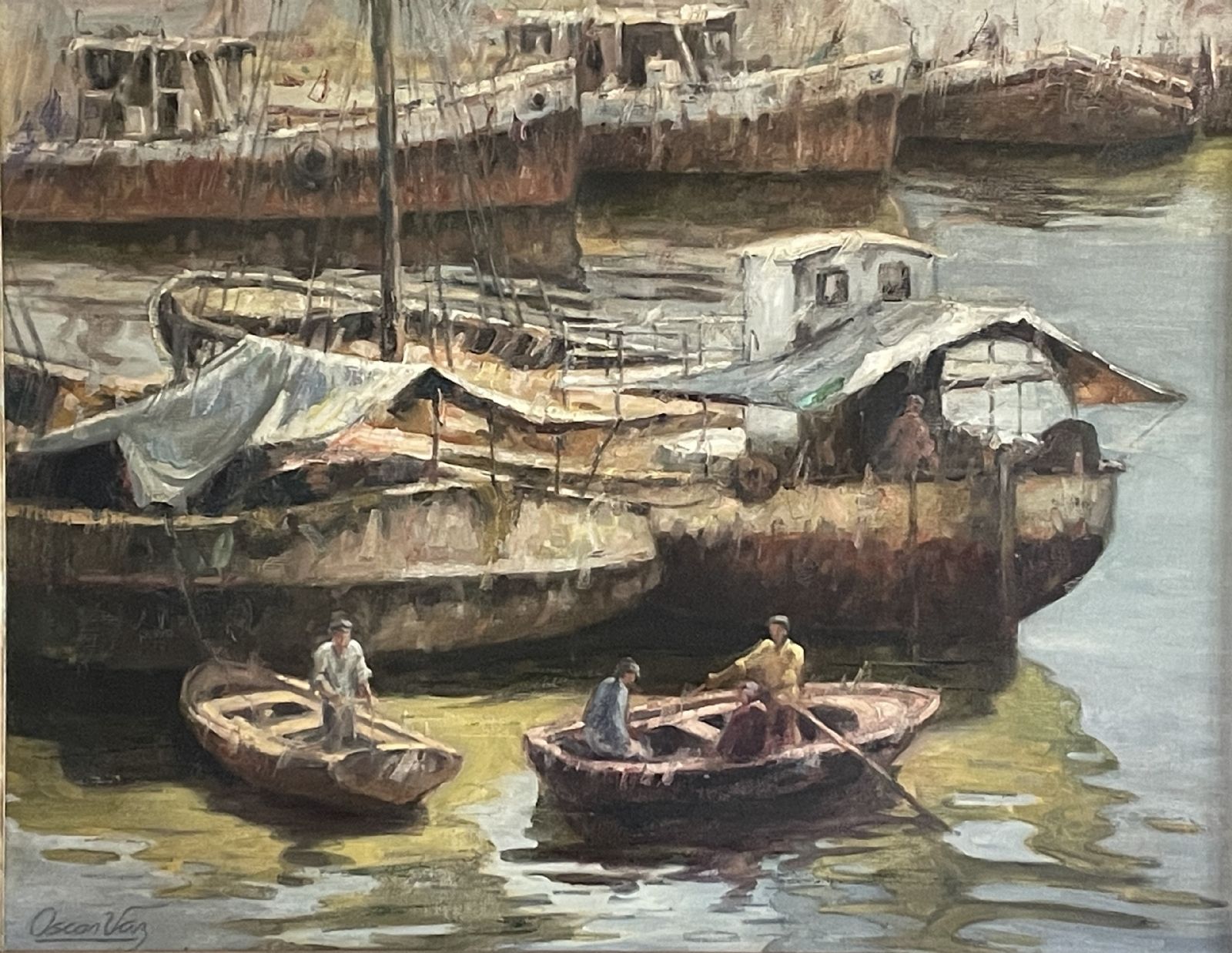 El caso de Oscar Vaz es distinto. Hijo de inmigrantes andaluces, nació en Barracas el 10 de octubre de 1909. Recorrió los muelles desde niño, acompañando a su padre en su tarea de despachante de aduana, y así comenzó su amor por el Riachuelo. Aunque siempre dibujó, recién a los 30 años tomó sus primeras clases. Dibujando y haciendo claroscuros, aprendió a valorar los matices del color.