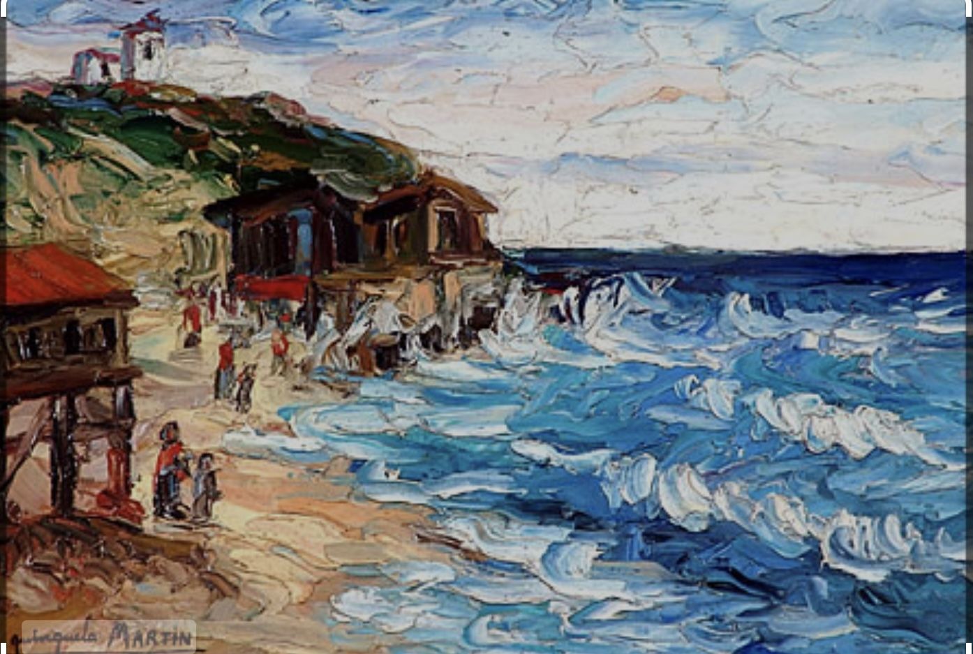 De entre los nuestros es digno de mención Benito Quinquela Martín, de quien ya nos hemos ocupado en notas anteriores. El pintor de la Boca llegó a Mar del Plata en 1920 para exponer en la Rambla, traído por la famosa galería Witcomb que tenía allí una magnífica sala. Hasta aquella época firmaba “Chinchella”(el apellido de su padre adoptivo) y en alguna de las pinturas de playas que pinta el el balneario empieza a castellanizar su nombre a fin de que “suene” como corresponde. Agregará luego su tercer nombre (había sido bautizado Benito Juan Martin) al apellido y así pasará a la historia.