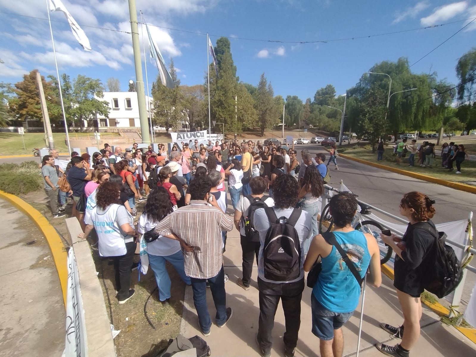 El paro convocado por el Frente Sindical Universitario - integrado por CONADU Histórica, CONADU, FEDUN, FAGDUT, UDA, CTERA y FATUN- tuvo un importante acatamiento en diferentes lugares de la UNCuyo. La concentración en la rotonda de ingreso a la UNCuyo “fue un éxito”, dijo la Secretaria Adjunta de Fadiunc, Yamile Nazrala a pesar de haber sido convocada con menos de 24 horas de anticipación.