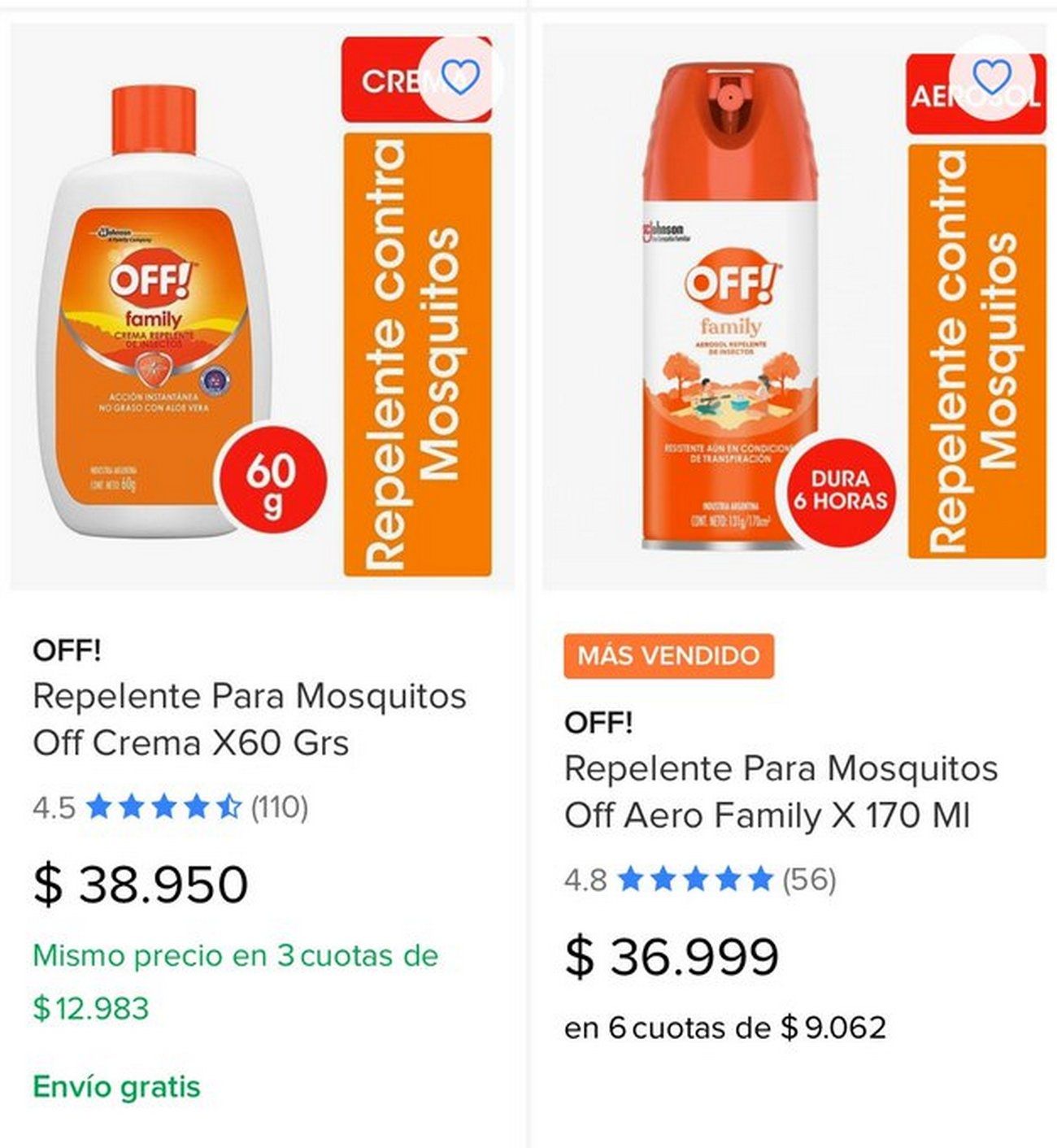 El brote histórico de dengue que atraviesa la Argentina en las últimas semanas disparó el precio de los repelentes y espirales ante la alta demanda y el faltante de stock en algunas góndolas. En las últimas horas, se hizo viral en la red social X, la marca "Off", al difundirse que en la plataforma Mercado Libre se venden a $36.999 un repelente en aerosol de 170 cc y a $38.950 uno de la misma marca de 60cc en crema.