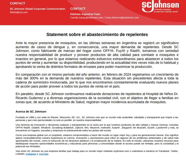 La empresa es S.C. Johnson es la dueña de la marca "OFF", además de comercializar Fuyí y Raid en la Argentina.