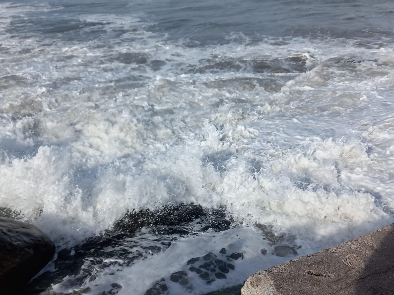 En el Paseo Dávila, que conecta las playas del centro con las de La Perla, el tránsito se interrumpió porque el impacto de las olas salpicó primero la vereda, luego la calle, y llegó hasta a traspasarla, dejando una zona resbaladiza donde se procedió a evitar la circulación de los automovilistas.